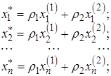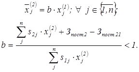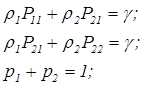которые представляют собой систему трех линейных уравнений с тремя неизвестными . Найденное решение трактуется как долевое распределение производственных ресурсов между оптимальными чистыми стратегиями производства и определяет собой смешанную стратегию выпуска продукции в объемах