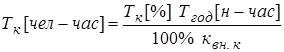 Каждая k-тая специальность основных производственных рабочих характеризуется процентной долей трудоемкости Тк