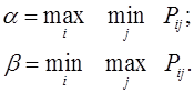 Если нижняя и верхняя цены игры не равны между собой: ; то для обеспечения максимального гарантированного результата должны выполняться следующие соотношения