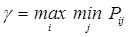 В случае равенства нижней и верхней цены игры, что соответствует наличию седловой точки в рассматриваемой матричной игре, цена игры (g) – гарантированный максимальный результат – определяется одной из чистых стратегий , доставляющей максимальный результат из наихудших возможных исходов