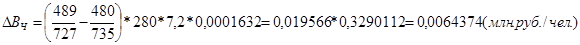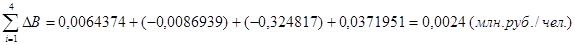 -За счёт увеличения роста доли рабочих среднегодовая выработка выросла на 0,0064374 млн. руб./чел.;