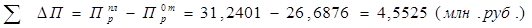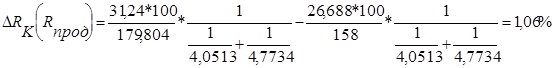 изменения размера прибыли на 1 рубль выручки (рентабельности продукции)