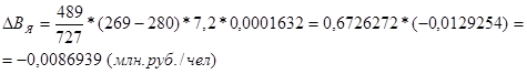 -За счёт снижения рабочих дней на 11, среднегодовая производительность труда уменьшилась на 0,0086939 млн. руб./чел.;