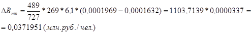 -За счёт роста среднечасовой выработки рабочих на 0,0001969 млн.руб./чел. Среднегодовая выработка увеличилась на 0,0371951 млн. руб./чел.