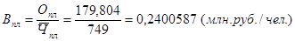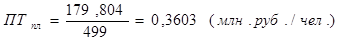 Тогда производительность труда (ПТ) в планируемом году (Впл) определится по формуле: