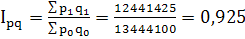 Знаходимо індивідуальний індекс кількості та індивідуальний індекс ціни: