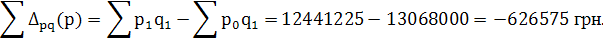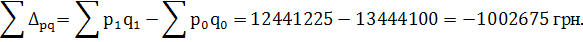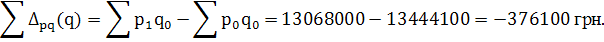 Порівнюючи чисельник та знаменник індексу визначаємо показник абсолютного приросту товарообігу у звітному періоді в порівнянні з базисним: