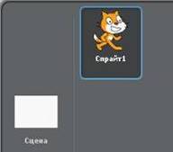 Все, что создано, отображается на листе спрайтов, где можно выбрать один из спрайтов для настройки. При этом информация о текущем спрайте отображается в средней части экрана – поле скриптов (см. рис. 5). Это поле предназначено для описывания поведения данного спрайта.