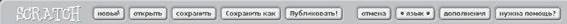 Кроме них отдельно выделены кнопки переключения режима поворота спрайтов, панель инструментов, а также кнопки запуска и остановки скриптов.
