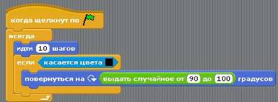 С точки зрения проверки знаний учащихся, реализация данного скрипта показывает умение работать учащихся с блоком «Движение», «Внешность», «Контроль» и «Переменные».