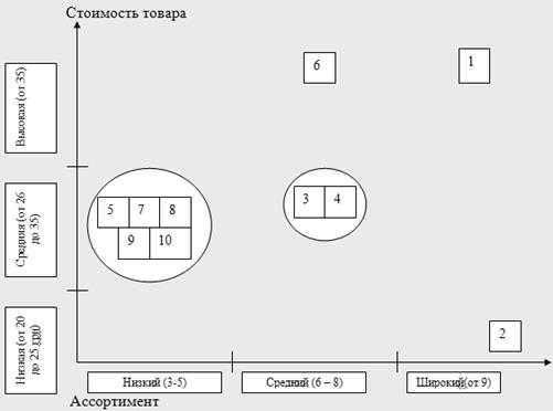 Рис.1 стратегические группы "Цена – ассортимент"