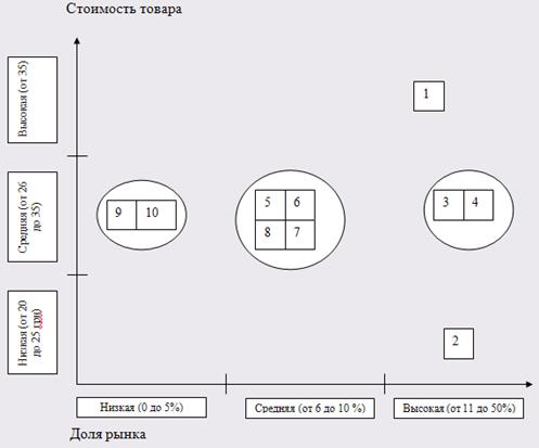 Рис. 2 – стратегические группы "Цена – доля рынка"