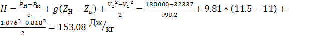 = 152706+998.2*9.81*(13-8)- 998.2* =191196 Па