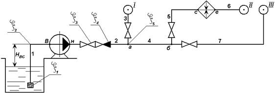 Рассчитать систему водопроводов, показанную на эскизе, определить давление у потребителей, допустимую высоту всасывания [Нвс