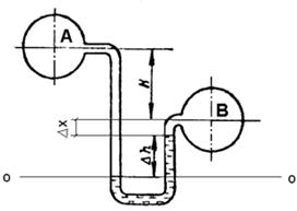 Определить разность давлений в точках А и В, заполненных водой резервуаров (см. рис. 2), если известны показания ртутного дифманометра Д h= 20 см и расстояние между точками Н =0,7 м. Плотность воды св