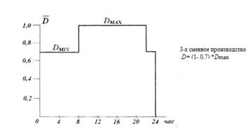 Подача пара к технологическому агрегату в течении суток изменяется в соответствии с продолжительности и числом рабочих смен. На графиках расходы приведены в относительных величинах от максимума (D¯= D/Dmax