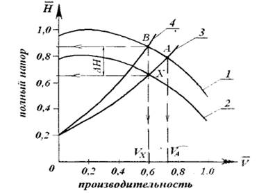 - характеристика насоса при номинальном режиме с числом оборотов nном