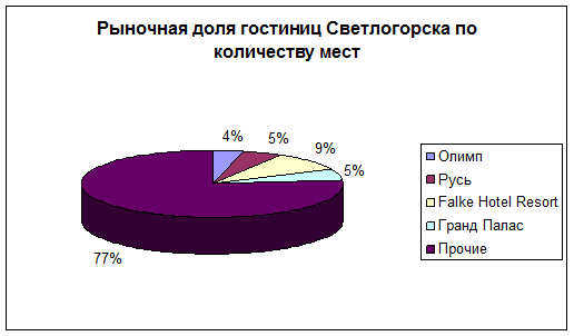 Рис. 1 Рыночная доля гостиниц Светлогорска по количеству мест