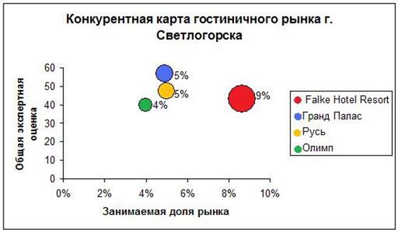 Рис. 2 Конкурентная карта гостиничного рынка г. Светлогорска