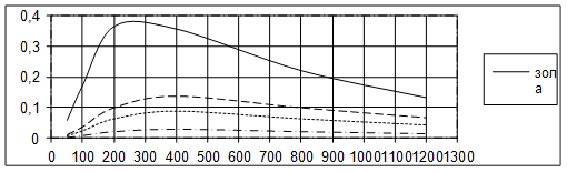 Рисунок 1 Зависимость приземной концентрации вредных примесей от расстояния источника выбросов.