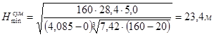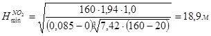 Предварительное значение минимальной высоты дымовой трубы, м,
