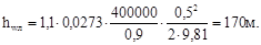 Магистральные трубопроводы рассчитываются как гидравлически длинные. Местные потери трубопровода учтём как 10% от потерь напора по длине. Тогда общие потери напора составят: