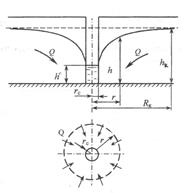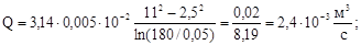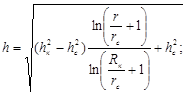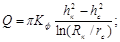 где hк, hc –соответственно глубина фильтрационного потока на контуре питания и глубина жидкости в скважине;