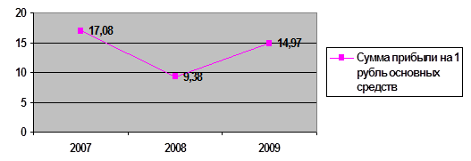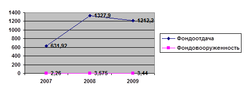 Фондоотдача увеличилась на предприятии в 2008 году и уменьшилась в 2009 году. Это связано с ростом средней стоимости основных средств при незначительной динамике численности работников. Фондовооруженность увеличилась в 2008 году и уменьшилась в 2009 году относительно 2008 года. Сумма прибыли на 1 рубль основных фондов в 2008 году уменьшилась на 7,7 тыс. руб. и увеличилась в 2009 году на 5,59 тыс. руб.