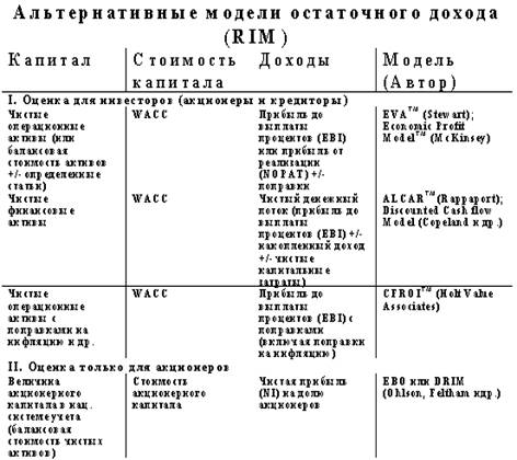 =(свободный)_денежный_потокr=ставка_дисконтирования «остаточная»_чистая_прибыль «остаточная»_операционная_прибыльv = прочая информация значимая при прогнозировании «сверх»доходов.