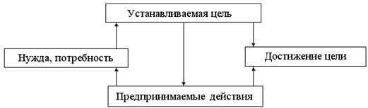 Как видно из рисунка, процесс мотивации начинается с какой-либо ощущаемой неудовлетворенной потребности, нужды. Затем определяется цель, которая предполагает, что для удовлетворения потребности требуется некое направление действий, посредством которых может быть достигнута цель и начаться удовлетворение потребности.