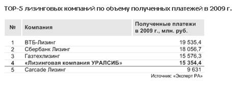 деятельности отрасли. В 2009-2010 гг. «ЛК УРАЛСИБ» переходит от широкого спектра клиентского привлечения к узкоспециализированной работе с целевыми отраслевыми клиентскими сегментами в отраслях, устойчивых в период кризиса, и имеющих большой потенциал роста после его завершения. То есть видим, что компания сумела подстроиться под спрос потребителей в период кризиса, а это немалый успех. Кроме того осуществляется и розничный и корпоративный лизинг, что также создаёт преимущество перед другими компаниями.