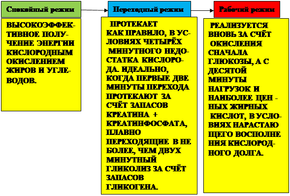 Даже малая наша активность очень быстро, до тысячи раз, увеличивает энергетическую потребность клеток, вынуждая их временно переходить на затратный, почти в 14 раз, бескислородный способ производства энергии в цитоплазме с постепенным возвратом к окислительному митохондриальному пути.