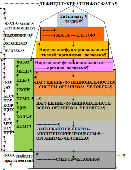 Первоначальные симптомы усталости и мышечной боли наступают при рН=7,30. Дальнейший сдвиг этой жесткой физиологической константы организма ведёт к тяжёлым последствиям, а при уменьшении на 0,3 вызывает его смерть. КРЕАТИНФОСФАТ снижает крайне опасную ЗАВИСИМОСТЬ стабильности ЭНЕРГОСНАБЖЕНИЯ наших клеток от ГЛИКОЛИЗА!
