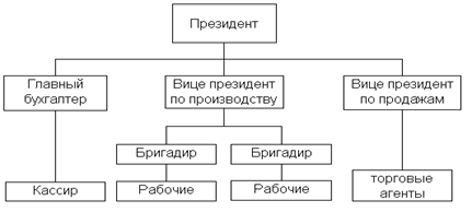 – соблюдение строгой управленческой вертикали – цепь управления от начальника к подчиненному спускается сверху вниз по всей организации и используется как канал для коммуникации и принятия решения;