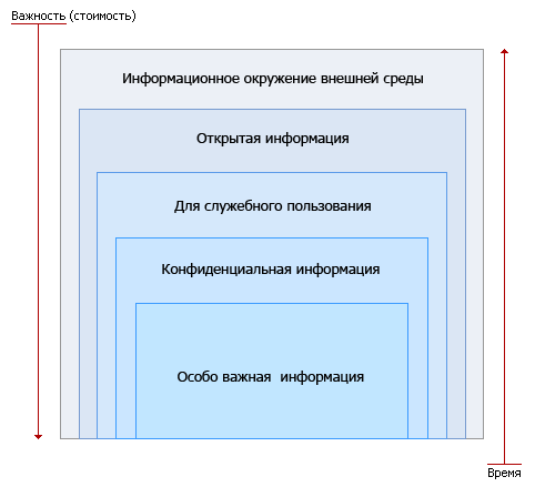 Корпоративная информация должна периодически переклассифицироваться (обычно с течение времени относиться к менее важной) (Рис.3).