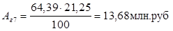 Аг -сумма амортизационных отчислений за год, млн. руб.
