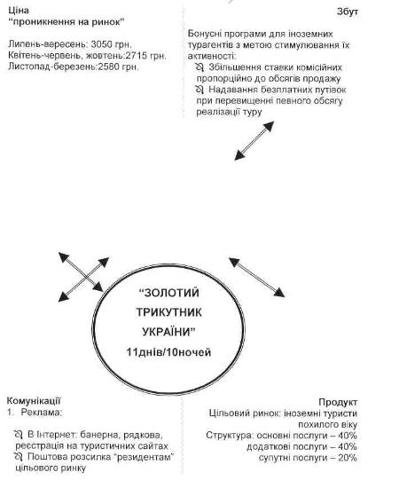 - у комплексі маркетингових комунікацій з потенційними іноземними туристами пріоритет слід надавати рекламі в середовищі Internet, а саме банерним та рядковим її підвидам. Велику віддачу має пряма поштова реклама, адресатами яким можуть українські представництва за кордоном. При цьому переслідується і мета пропаганди України як туристичного напряму;
