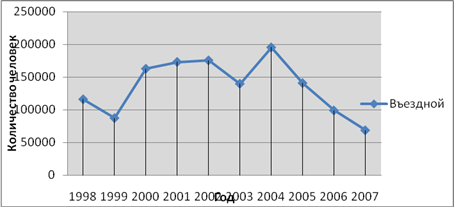Рисунок 1. - Показатели въезда иностранных туристов в Приморский край (с.25)