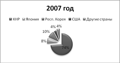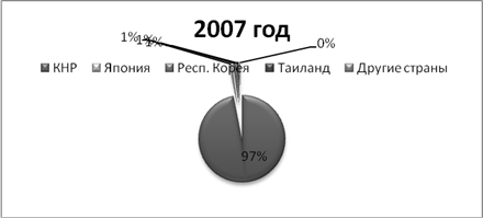 Рисунок 3. - Сравнительная диаграмма показателей въезда иностранных туристов в Приморский край в 2007 г. (с.27)