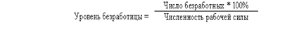 Фактический уровень безработицы рассчитывается как процентное отношение общего количества безработных к общей численности рабочей силы или как сумма уровней безработицы всех типов (фрикционной, структурной и циклической): Поскольку сумма уровней фрикционной, структурной и вынужденной безработицы равна естественному уровню безработицы, то фактический уровень безработицы равен сумме естественного уровня безработицы и уровня циклической безработицы: u факт.= u* + u цикл.