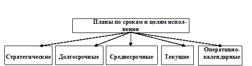 Целевую ориентацию системы планов рассмотрим на примере группировки планов по срокам и целям исполнения (рис.2)