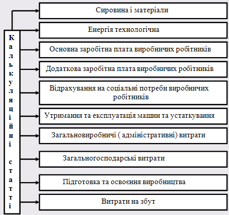 15. Номенклатура калькуляційних статей, їх характеристика та методика обчислення.