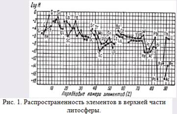 | Рис. 1. Распространенность элементов в верхней части литосферы. |