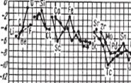 На диаграмме по оси абсцисс расположены порядковые номера химических элементов, а по оси ординат — логарифмы их атомныхкларков. Можно видеть, что с увеличением порядкового номера кривыекларков как четных, так и нечетных элементов в общем обнаруживаюттенденцию к понижению. Это означает, что для большинства химическихэлементов имеет место обратно пропорциональная зависимость их среднего содержания в земной коре от порядкового номера, хотя встречаютсяи исключения (например, для Li, Be, В и др.).
