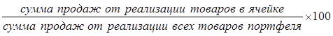 Удельный вес продаж ячейки в объеме продаж всего предприятия 1%