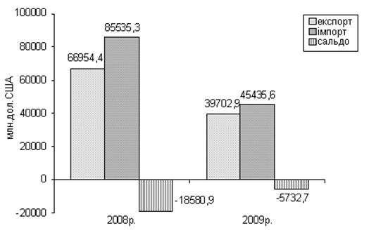 Обсяги зовнішньої торгівлі товарами та послугами України з Російською Федерацією за 2009 рік становили 25835,1 млн. дол. США і зменшилися у порівнянні з 2008 роком на 14065,5 млн. дол. США або на 35,3%. Експорт товарів і послуг за 2009 рік становив 11947,3 млн. дол. США і у порівнянні з 2008 роком зменшився на 7644,7 млн. дол. США або на 39%. Імпорт товарів та послуг за 2009 рік становив 13887,8 млн. дол. США і у порівнянні з 2008 роком зменшився на 6420,8 млн. дол. США або на 31,6%. Сальдо за 2009 рік у торгівлі з Російською Федерацією негативне і становило 1940,5 млн. дол. США та збільшилось на 1223,9 млн. дол. США у порівнянні з минулим роком (у 2008 році від’ємне сальдо становило 716,6 млн. дол. США).