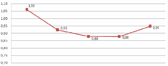 Показник умов експорту суб'єктів ЗЕД – це індекс середніх цін експорту. Де чисельник – індекс середніх цін експорту в і-му році; знаменник – індекс середніх цін експорту в базисному році. Якщо частка дорівнює 1. то умови експорту суб'єктів ЗЕД не змінились. Якщо частка менше 1, то умови експорту суб'єктів ЗЕД погіршились. Це означає, що товари продаються по більш низьким цінам у даному році порівняно з попереднім роком. Якщо частка більше 1, то умови експорту суб'єктів ЗЕД покращились. Це означає, що в даному році товари експортуються суб'єктами ЗЕД по вищим цінам ніж у попередньому році.