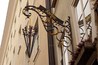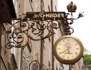 С течением времени на вывесках стали появляться универсальные символы: у кузнецов – молот или подкова, у слесарей – ключ, у торговцев вином – бочка, а у ростовщиков – три шара. В этот период вывески изготовлялись преимущественно из металла и при помощи кронштейнов крепились на фасады домов. Четкая и объемная форма вывески обеспечивала хорошую видимость, что было особенно важно на узких и длинных улочках западноевропейских городов.