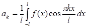 Пусть f(x) есть периодическая функция с периодом 2l, вообще говоря, отличным от 2π. Тогда при разложении ее в ряд Фурье получим формулу: