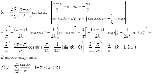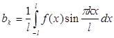 Рассмотрим, далее, следующий важный случай. Пусть функция f(x) задана на отрезке [0,l]. Дополняя определение этой функции произвольным образом на отрезке [-l,0] (сохраняя кусочно монотонность), мы можем разложить эту функцию в ряд Фурье. В частности, если мы продолжим определение функции f(x) при так: f(x) = , то получим нечетную функцию, которая разлагается по синусам. (Функция f(x) “продолжена нечетным образом”).